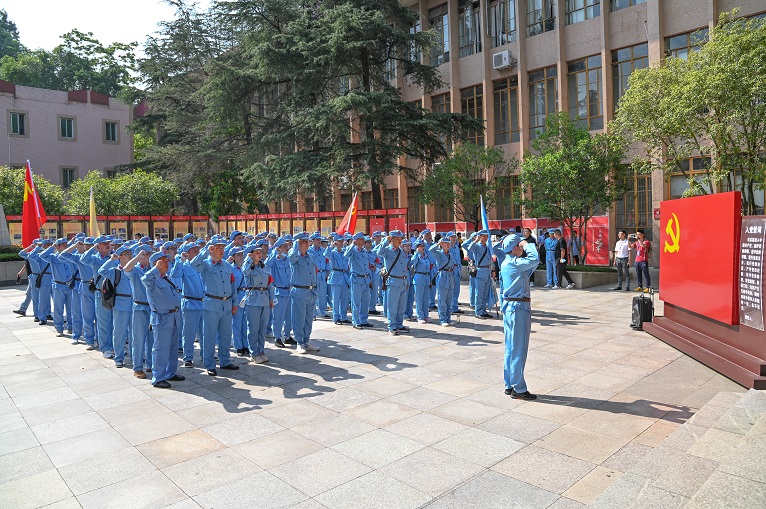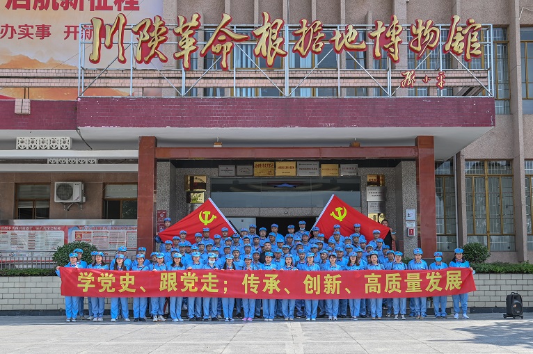 5月8日上午,集團(tuán)領(lǐng)導(dǎo)、全體黨員、中層以上干部身著紅軍服,來(lái)到位于巴州區(qū)的川陜革命根據(jù)地博物館,“12萬(wàn)巴山兒女參加紅軍,4.8萬(wàn)人英勇犧牲......”大家跟隨講解員仔細(xì)聆聽中國(guó)工農(nóng)紅軍第四方面軍將士的豐功偉績(jī),感受他們堅(jiān)定革命信仰、勇往直前、不畏犧牲的革命精神?!拔抑驹讣尤胫袊?guó)共產(chǎn)黨,擁護(hù)黨的綱領(lǐng)......”在川陜革命根據(jù)地博物館文化廣場(chǎng),全體黨員在集團(tuán)黨委書記周述軍的帶領(lǐng)下整齊列隊(duì),高舉右拳、莊嚴(yán)重溫入黨誓詞,更加堅(jiān)定“聽黨話、跟黨走”的信念。