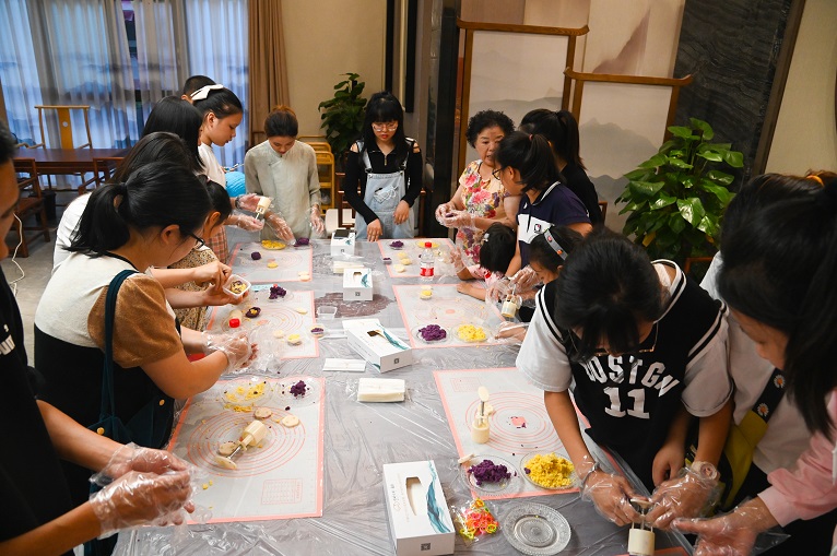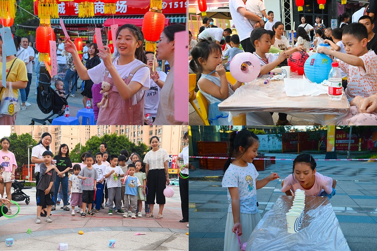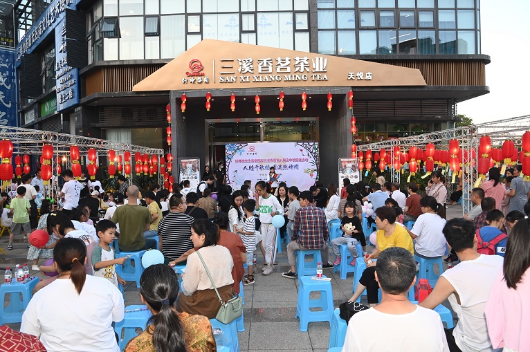 隨著主持人宣布活動(dòng)正式開始,現(xiàn)場(chǎng)氣氛被瞬間點(diǎn)燃,鮮紅的燈籠下吸引了大批燈謎愛好者駐足猜燈謎。游園活動(dòng)現(xiàn)場(chǎng)更成了小朋友們的樂園,吹乒乓、套圈、DIY中秋燈籠好不熱鬧。三溪香茗天悅店里又是一番景象,家長(zhǎng)們領(lǐng)著自家小朋友做著手工月餅和冷飲,一片溫馨祥和。