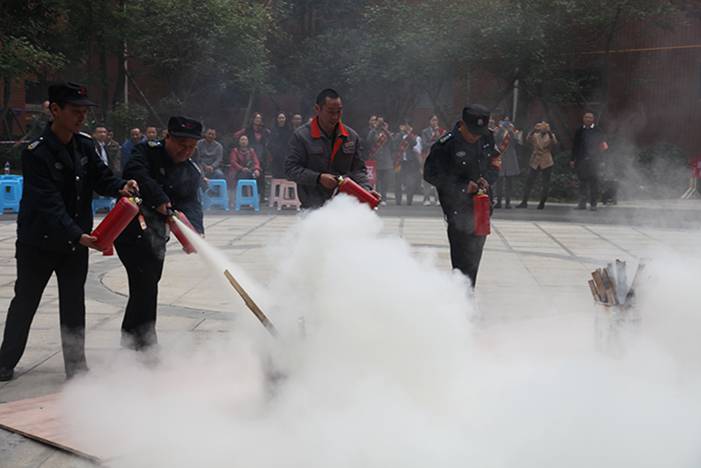 演習開始前,物業(yè)副經理吳幫斌給大家講解了此次演習的注意事項及應對措施。伴隨著一聲聲警報聲,從一居民樓冒出陣陣濃煙,消防人員立刻緊張有序的進入“火災現場”進行傷員、財產搶救,面對“熊熊烈火”,大家都表現得十分積極,臨危不亂,按照滅火的步驟和方法將火堆燃起的濃煙大火迅速撲滅。接下來吳經理給業(yè)主們講解如何使用滅火器。在一寬敞的空地上用鐵桶燃火,工作人員依次演示如何滅火,在場的業(yè)主們都踴躍上場嘗試。緊接著防暴反恐演習開始,一名“歹徒”手拿“兇器”闖入小區(qū),此時對業(yè)主們安全造成了威脅,小區(qū)保衛(wèi)人員立即拉響警報,并手持鋼叉、防爆盾、棍棒等防爆工具,短短一分鐘內就制服“歹徒”奪下“兇器”,全小區(qū)無一人員“傷亡”。至此,警報解除。
