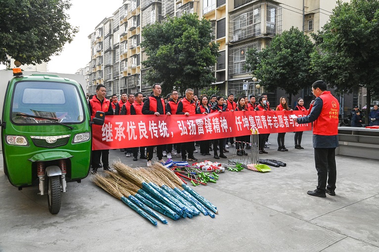 為認(rèn)真學(xué)習(xí)貫徹習(xí)近平總書記的“把雷鋒精神代代傳承下去——紀(jì)念毛澤東等老一輩革命家為雷鋒同志題詞六十周年”座談會議指示精神。強(qiáng)化職工的文明意識,深入開展“全域無垃圾”活動,3月5日上午,集團(tuán)黨委書記、副總裁周述軍同志帶領(lǐng)各集團(tuán)100余名青年志愿者來到雙勝小區(qū)開展“繼承優(yōu)良傳統(tǒng),弘揚(yáng)雷鋒精神,仟坤集團(tuán)青年志愿者與您同行”環(huán)保志愿活動。