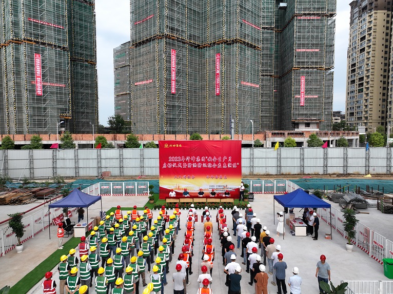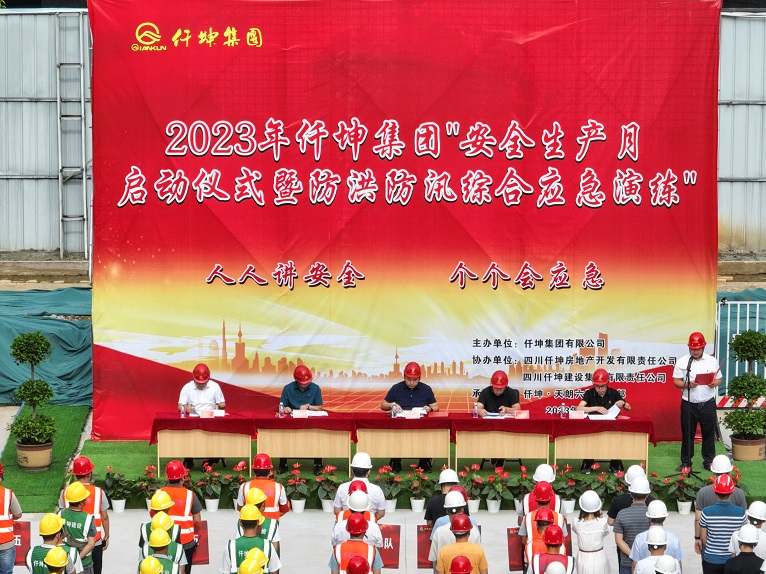 仟坤集團為扎實開展全國第22個安全生產(chǎn)月活動,落實國務(wù)院安委會辦公室、應(yīng)急管理部關(guān)于印發(fā)《2023年全國“安全生產(chǎn)月”活動方案》“人人講安全 個個會應(yīng)急”活動主題,進一步提升全集團安全意識和避險逃生能力。6月6日上午,由仟坤集團主辦,仟坤建設(shè)、仟坤房產(chǎn)承辦的“2023年仟坤集團安全生產(chǎn)月啟動儀式暨防洪防汛綜合應(yīng)急演練”在仟坤天朗6期項目工地隆重開展,集團總裁謝澤波、集團高層領(lǐng)導(dǎo)及各分(子)公司總經(jīng)理安全負責(zé)人共82人參與了演練的觀摩。