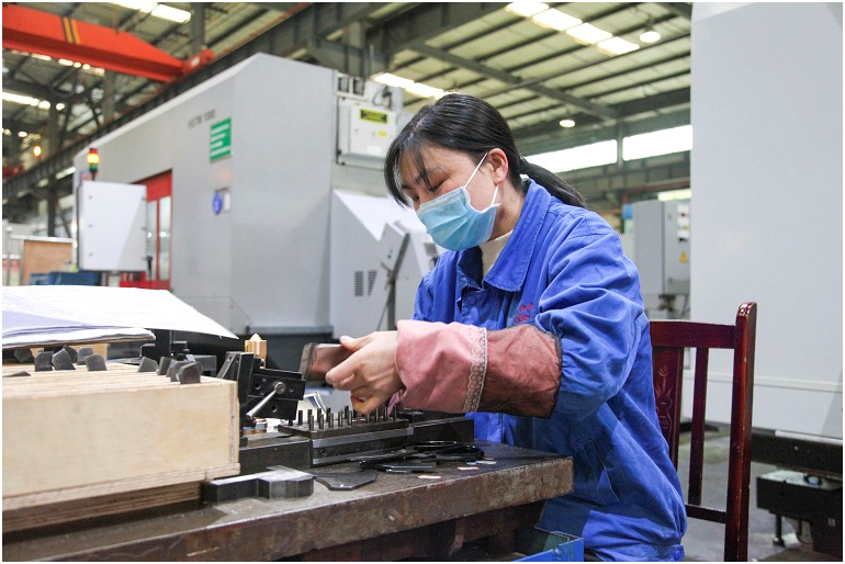 鑫坤機械的葉片車間里,伴著機器轟鳴,數(shù)控工段銑工楊代蓉正在進行檢料,她在平時工作中一絲不茍,熱愛學(xué)習(xí)的她不斷在崗位上建功立業(yè)。