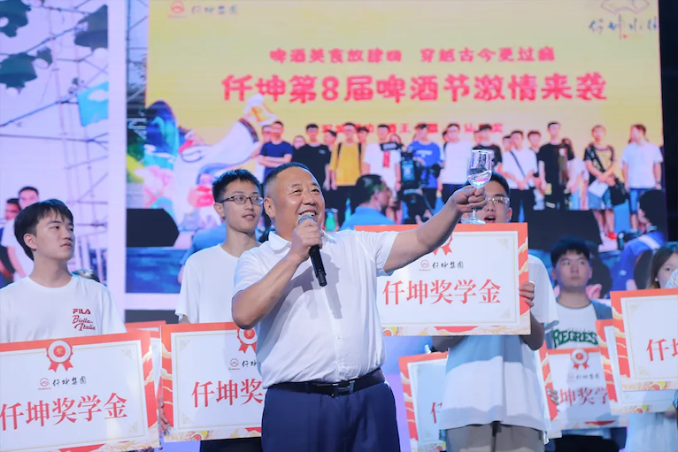 “仟坤小業(yè)主獎(jiǎng)學(xué)金”的頒發(fā)是仟坤啤酒節(jié)的重要環(huán)節(jié)。今年一共有177位小業(yè)主,總計(jì)發(fā)放獎(jiǎng)學(xué)金31萬(wàn)元。仟坤集團(tuán)董事長(zhǎng)謝世千向?qū)W子們送上滿滿的祝福,愿他們胸懷大志自強(qiáng)自立,譜寫新時(shí)代的青春之歌,實(shí)現(xiàn)人生更大價(jià)值。同時(shí)回顧了仟坤集團(tuán)的發(fā)展歷程,堅(jiān)定了對(duì)未來(lái)發(fā)展的信心和期許。小業(yè)主代表也進(jìn)行了慷慨激昂的演講,整個(gè)現(xiàn)場(chǎng)氣氛溫情且動(dòng)容,全場(chǎng)舉杯共飲!