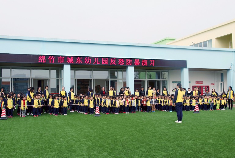 為切實做好反恐防暴安全工作,結(jié)合"119宣傳日",城東幼兒園于11月9日下午在園區(qū)開展了反恐防暴和消防演習(xí)。特邀綿竹市公安局特巡警大隊和東北派出所到城東幼兒園進(jìn)行反恐防暴演習(xí)指導(dǎo),演習(xí)前先對園區(qū)安保人員進(jìn)行了反恐應(yīng)急處理講解。